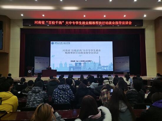 11月26日,由共青团河南省委、河南省人力资源和社会保障厅主办,我校团委承办的河南省“百校千岗”大中专学生就业精准帮扶行动就业指导宣讲会在我校大学生活动中心报告厅举行。来自我校各学院的700余名学子聆听了讲座。